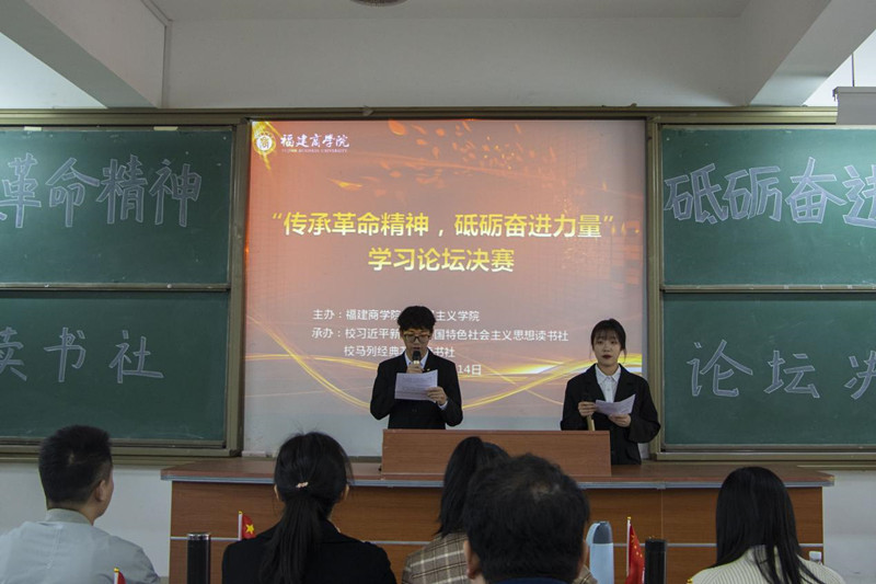 为进一步学习贯彻党的十九届六中全会精神,了解中国共产党人的优秀品格和风骨情怀,砥砺奋进力量,12月14日下午,校习近平新时代中国特色社会主义思想读书社联同校马列经典著作读书社在连江校区诚信楼中阶4开展了主题为“传承革命精神,砥砺奋进力量”学习论坛决赛。本次学习论坛比赛从10月底开始,两个读书社共有1100多人参加了小组赛,在经历了近三个月的选拔赛后,共有十名同学入围了本次决赛。校行政部门相关人员、yl6776永利集团全体教师、校读书社成员共150人参加了本次活动。