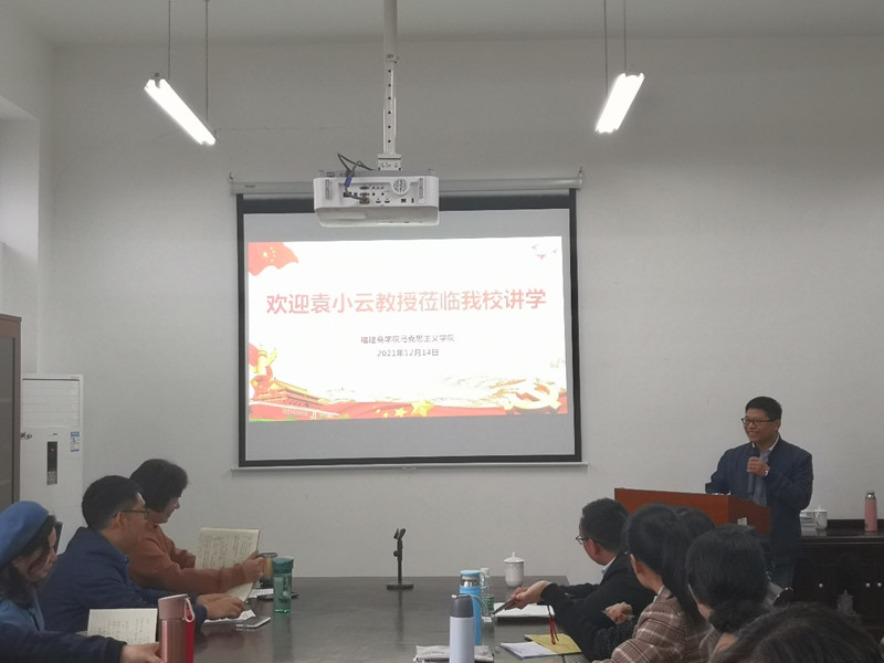 12月14日上午,福建工程学院yl6776永利集团院长袁小云教授应邀来我校作《学科性教学理念与思政课教学改革——聚焦”意识形态”,推动教研相长》专题讲座。校党委副书记吴访益、马克思主义全体教师参加此次讲座。