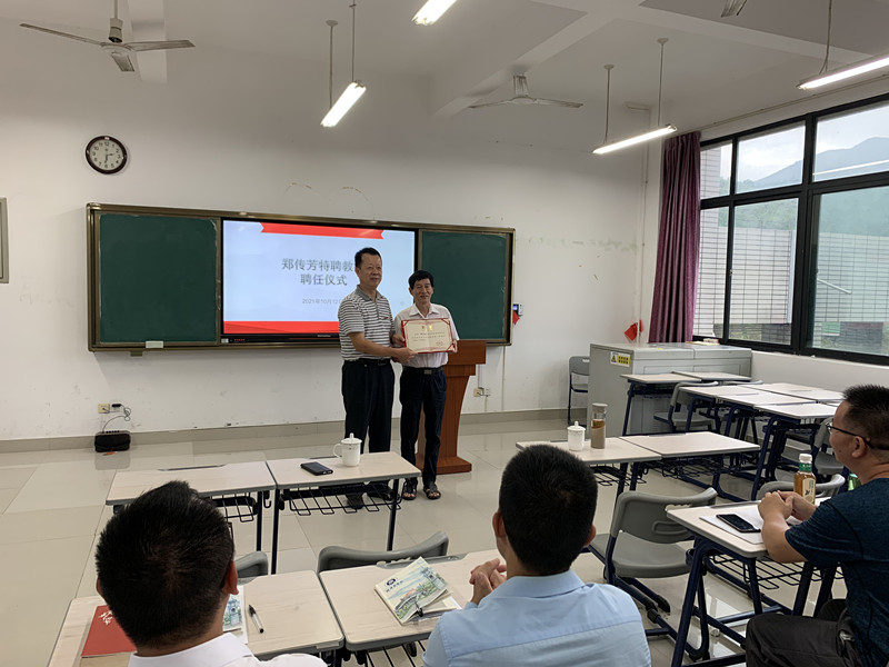 10月12日下午,我校举行思政课特聘教授聘任仪式,聘请省委宣讲团成员、中央马克思主义理论研究和建设工程首席专家郑传芳教授担任思政课特聘教授。校党委书记刘剑津向郑传芳教授颁发聘书,校党委副书记吴访益、校办公室有关人员及yl6776永利集团全体思政教师参加仪式。聘任仪式结束后,郑传芳教授为yl6776永利集团全体思政教师作题为《习近平总书记“七一”重要讲话精神进思政课的有关思考》的专题讲座。