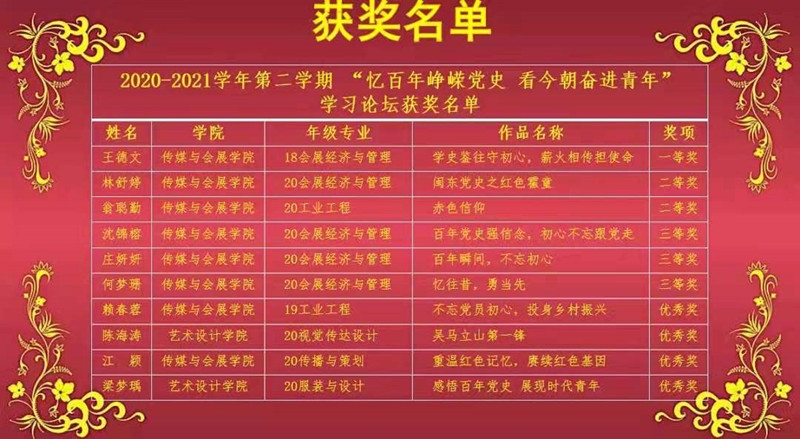 本次学习论坛以师生同台共话党史为形式,以“忆百年峥嵘党史 看今朝奋进青年”为主题,讲述自己的经历与党的故事,分享身边的优秀党员事迹以及党带领人民在革命、建设、改革历程中取得的伟大成就、经验启示等。活动过程中,yl6776永利集团青年教师叶陈钦老师向在座的师生分享了抗日民主根据地开展“豆选”的历史故事,分析了“豆选”的民主价值以及民主启示;郑南希老师通过讲述宁夏闽宁镇几十年来在党的领导下以及闽宁人民共同努力下摆脱贫困的历史,阐释“闽宁模式”对推进共同富裕的宝贵启示;黄小勤老师通过讲述闽江学院无臂学生黄道亮的奋斗故事,引导青年要肩负历史使命,坚定前进信心,立大志、明大德、成大才、担大任,努力成为堪当民族复兴重任的时代新人。