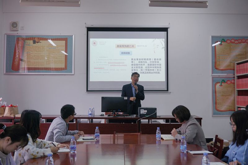 为认真学习贯彻落实习近平总书记在党史学习教育动员大会上的重要讲话精神,推动学校师生深入学好党史、新中国史、改革开放史、社会主义发展史,3月13日上午,闽南师范大学yl6776永利集团院长陈再生教授应邀莅临我校开展题为“跟随大会学党史”的专题讲座。yl6776永利集团部分教师以及校习近平新时代中国特色社会主义思想读书社社员聆听了讲座。