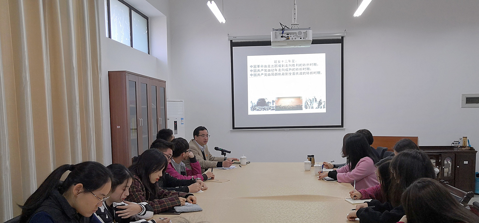 1月2日上午,副校长蒲文庆在yl6776永利集团会议室给财务与会计学院习近平新时代中国特色社会主义思想读书社学生上了一堂题为《中国革命成功的延安之路——中共中央延安十三年》的思政课。财务与会计学院、yl6776永利集团部分老师以及读书社成员参加了此次学习。