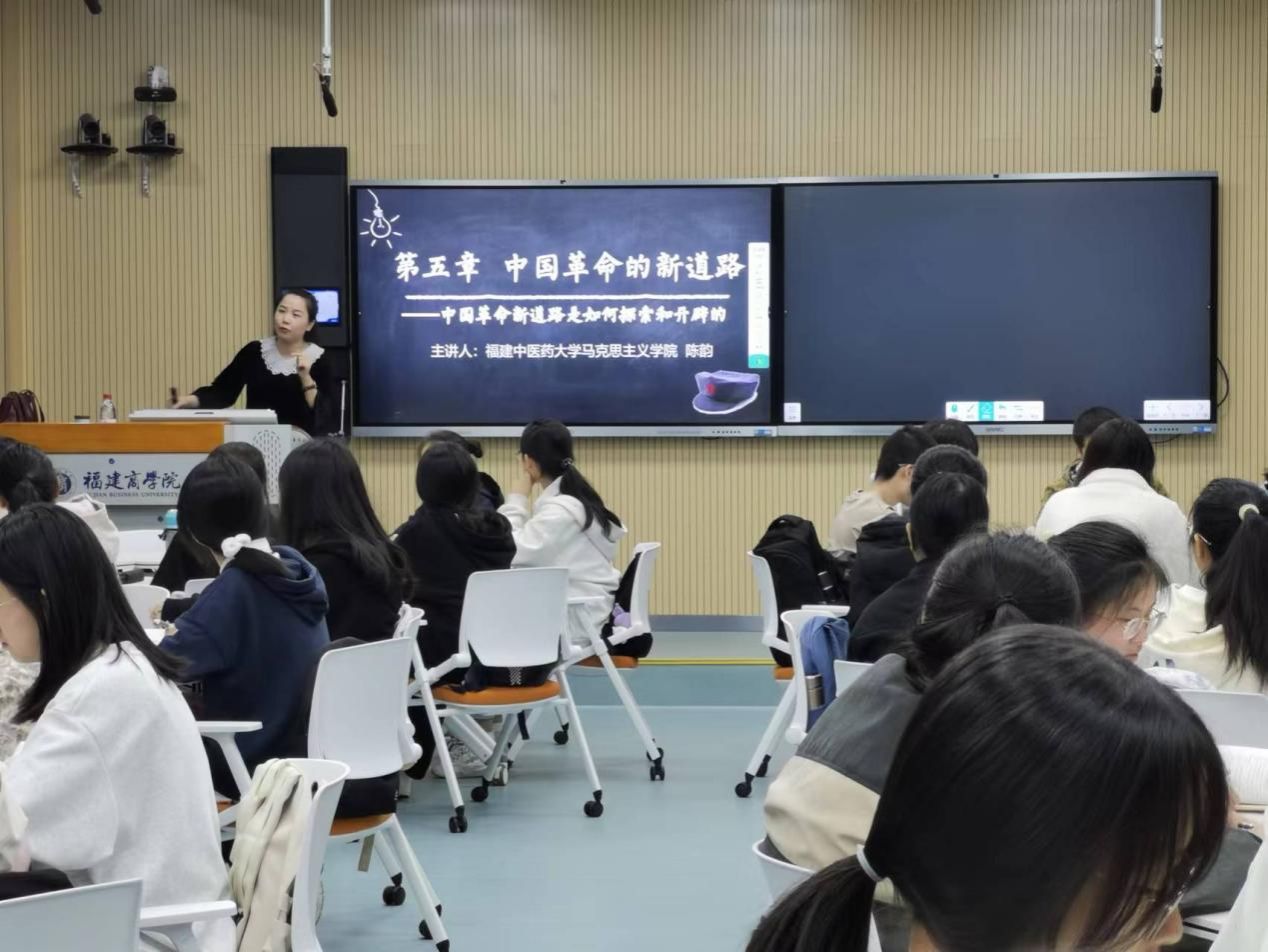 3月22日上午,应yl6776永利集团邀请,全国高校思政课教学能手、福建中医药大学yl6776永利集团陈韵教授走进连江校区智慧教室,以“对革命新道路的艰辛探索”为题开展教学示范。