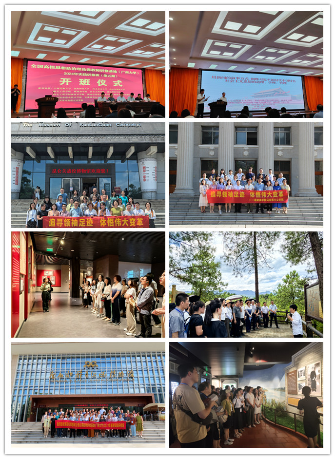 为深入学习贯彻习近平总书记对学校思政课建设作出的重要指示精神,全面贯彻党的教育方针,落实立德树人根本任务,紧扣新时代新征程教育使命,不断开创新时代思政教育新局面,7月15日我院思政课教师前往位于广西壮族自治区首府南宁市的广西大学参加高校思想政治理论课教师实践研修班。