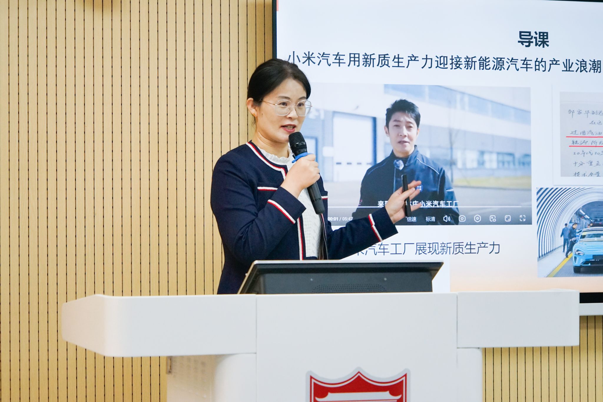 会议伊始,福建师范大学yl6776永利集团任远老师和我校李雪飞老师围绕《马克思主义基本原理》课的核心知识点——“唯物辩证法的总特征”,依次进行了教学展示。其中,李雪飞老师以《从认识新质生产力出发感悟唯物辩证法发展观之魅力》为题,巧妙选取新质生产力引领新能源汽车为案例,围绕唯物辩证法发展观的实质、原因,状态以及趋势展开讲解,为在座师生带来了一堂生动的思政示范课。