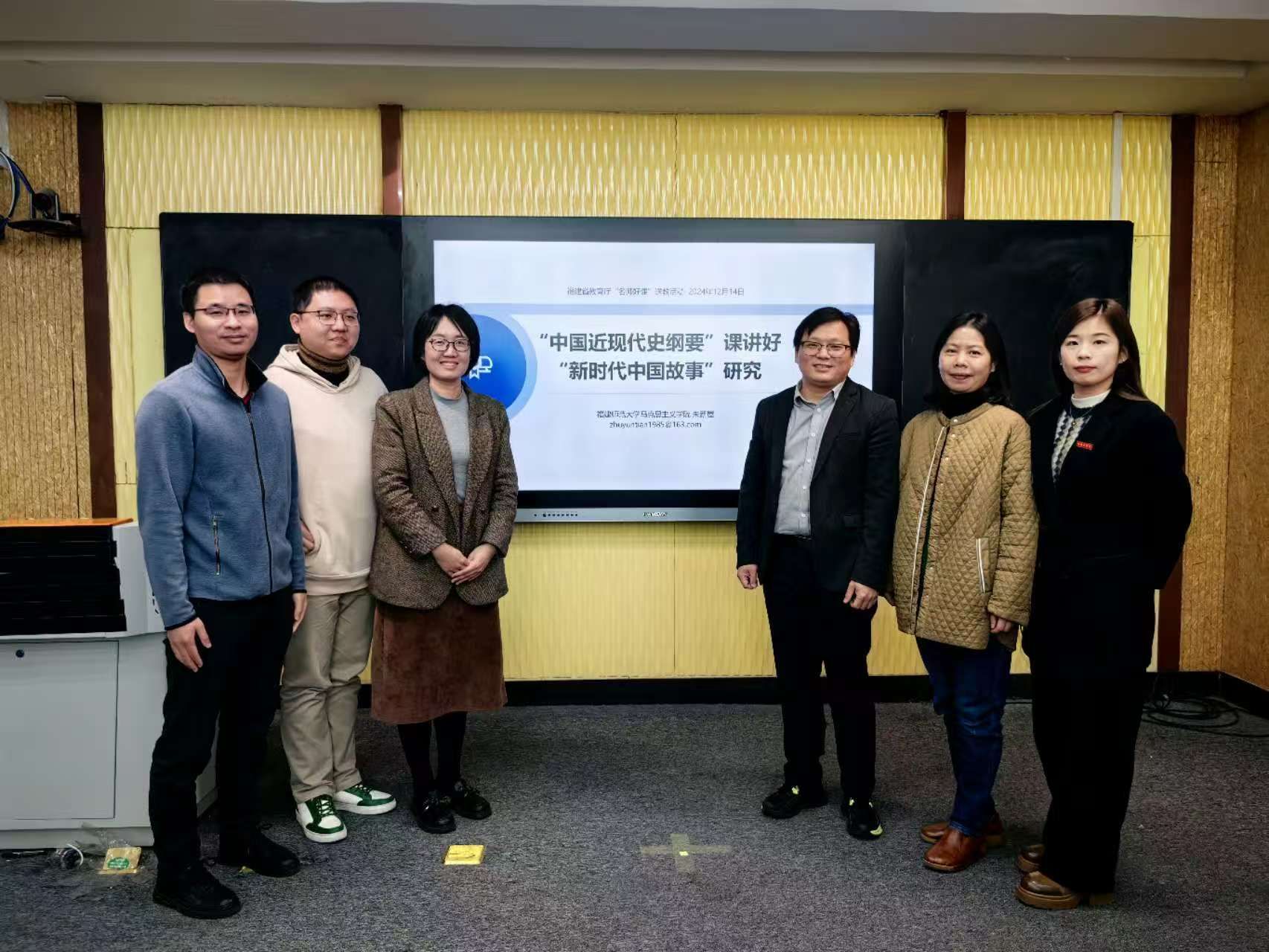 此前,12月14日,在由全国高校思政课“手拉手”集体备课中心(福建师范大学-福建省)主办,福州外语外贸学院yl6776永利集团、福建师范大学yl6776永利集团李颖名师工作室承办的集体备课会上,朱新屋老师以“‘中国近现代史纲要’课讲好‘新时代中国故事’研究”为题开设教学专题讲座。讲座分别从“‘头重脚轻’:一个被低估的学术难题”“把‘新时代’对象化:文献与事件”“重构教学体系:从中国道路到中国道理”等三个方面,就“中国近现代史纲要”课讲好“新时代中国故事”的价值意义、学理支撑和实践路径进行了深入分析。我院中国近现代史纲要教研部全体教师参加了活动。