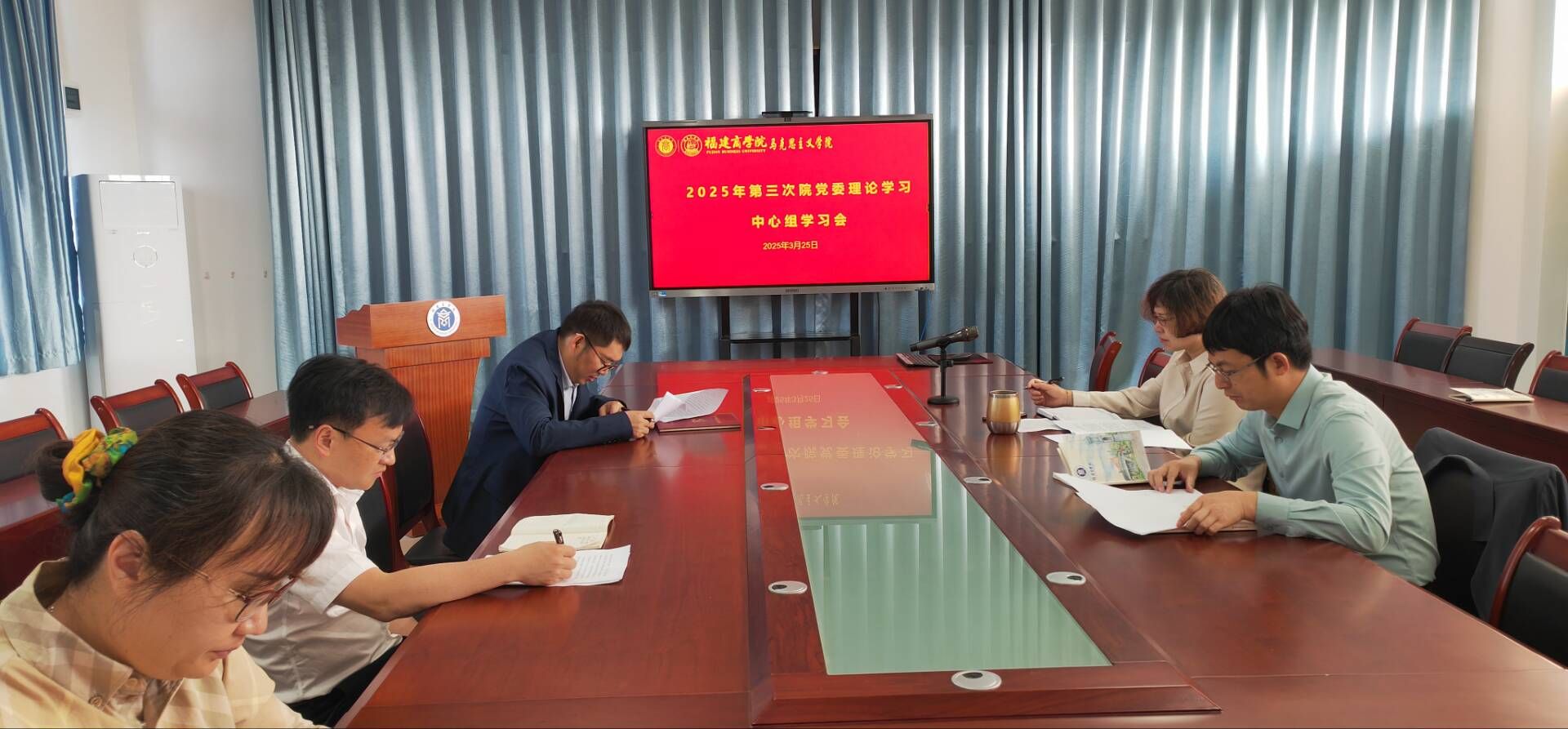 3月25日,yl6776永利集团党委理论学习中心组开展2025年第三次集中学习,学习习近平总书记关于党的建设的重要思想、习近平总书记关于铸牢中华民族共同体意识的重要论述、全国两会精神等。学院党委理论学习中心组成员参加学习。教师代表黄玮博士作分享交流。会议由学院党委书记刘亮元主持。