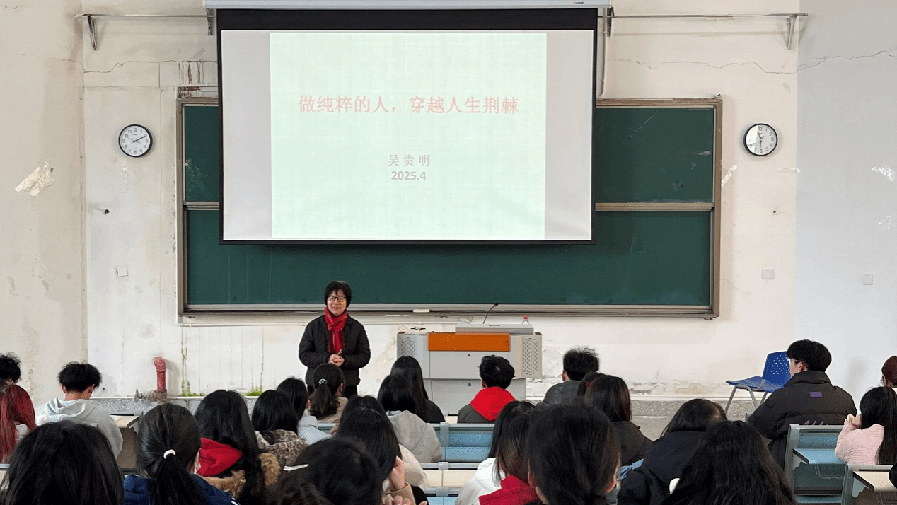 应yl6776永利集团邀请,4月1日下午,福建省委党校吴贵明教授到我校马尾校区国际厅为马列经典著作读书社全体社员作题为“做纯粹的人 穿越人生荆棘”的专题讲座。