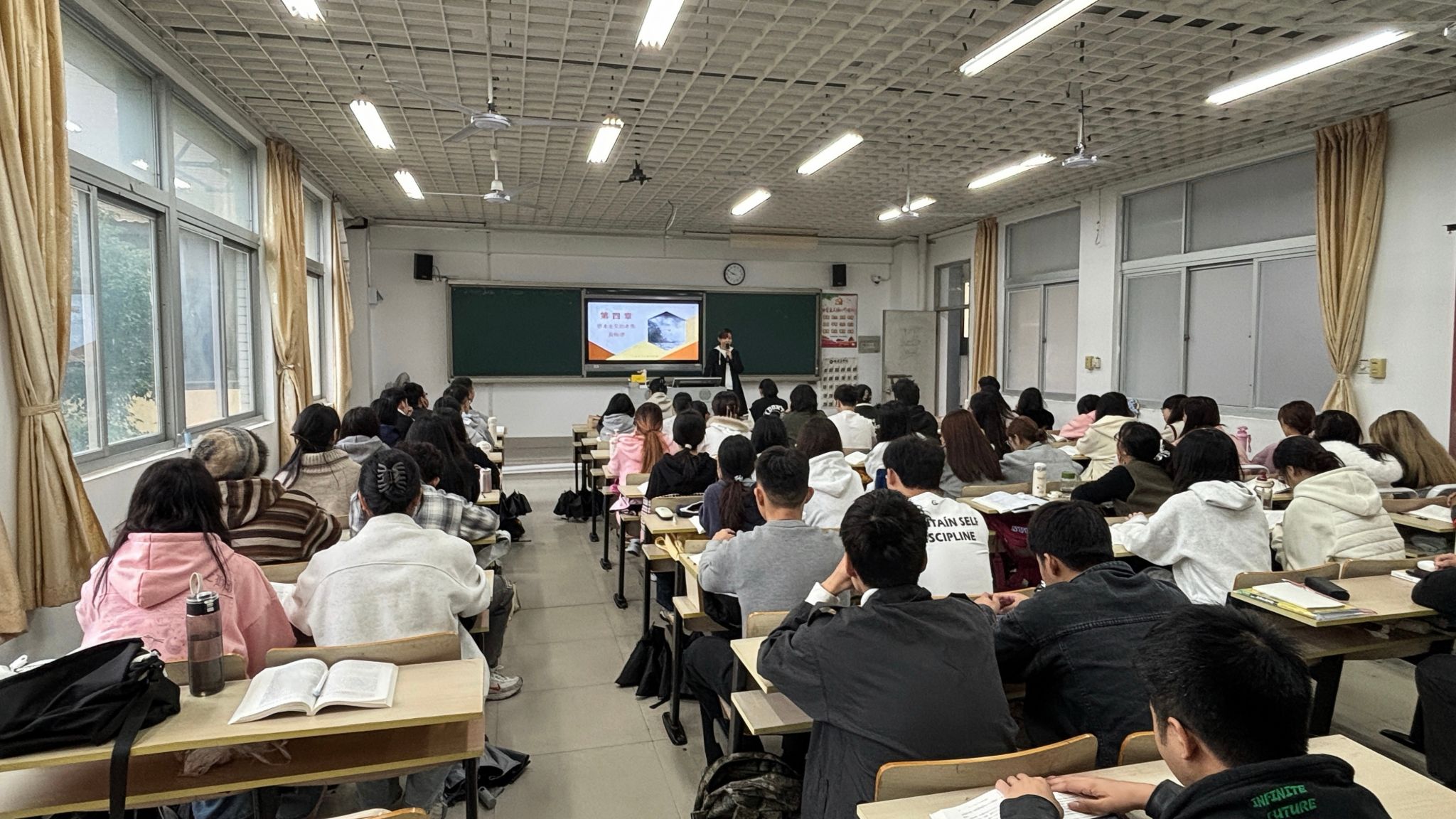林甦垚老师引用马克思在《资本论》中说过的“金银天然不是货币,但货币天然是金银”作为教学导入,通过问题链形式引导学生深入思考,使用案例式教学、互动式教学等方法,向学生介绍了商品经济形成和发展的简要历程,讲授了社会必要劳动时间和劳动生产率的概念、商品价值形式的发展和货币的产生、以及货币的职能与作用等内容,循循善诱,步步深入,展开了一堂生动而深刻的课堂。