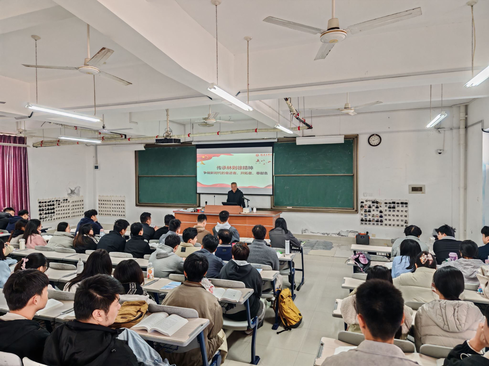 11月28日上午,校纪委书记(监察专员)林宇峰为2025级环境设计(专升本)专业学生讲授“传承林则徐精神 争做新时代的奋进者、开拓者、奉献者”主题思政课。