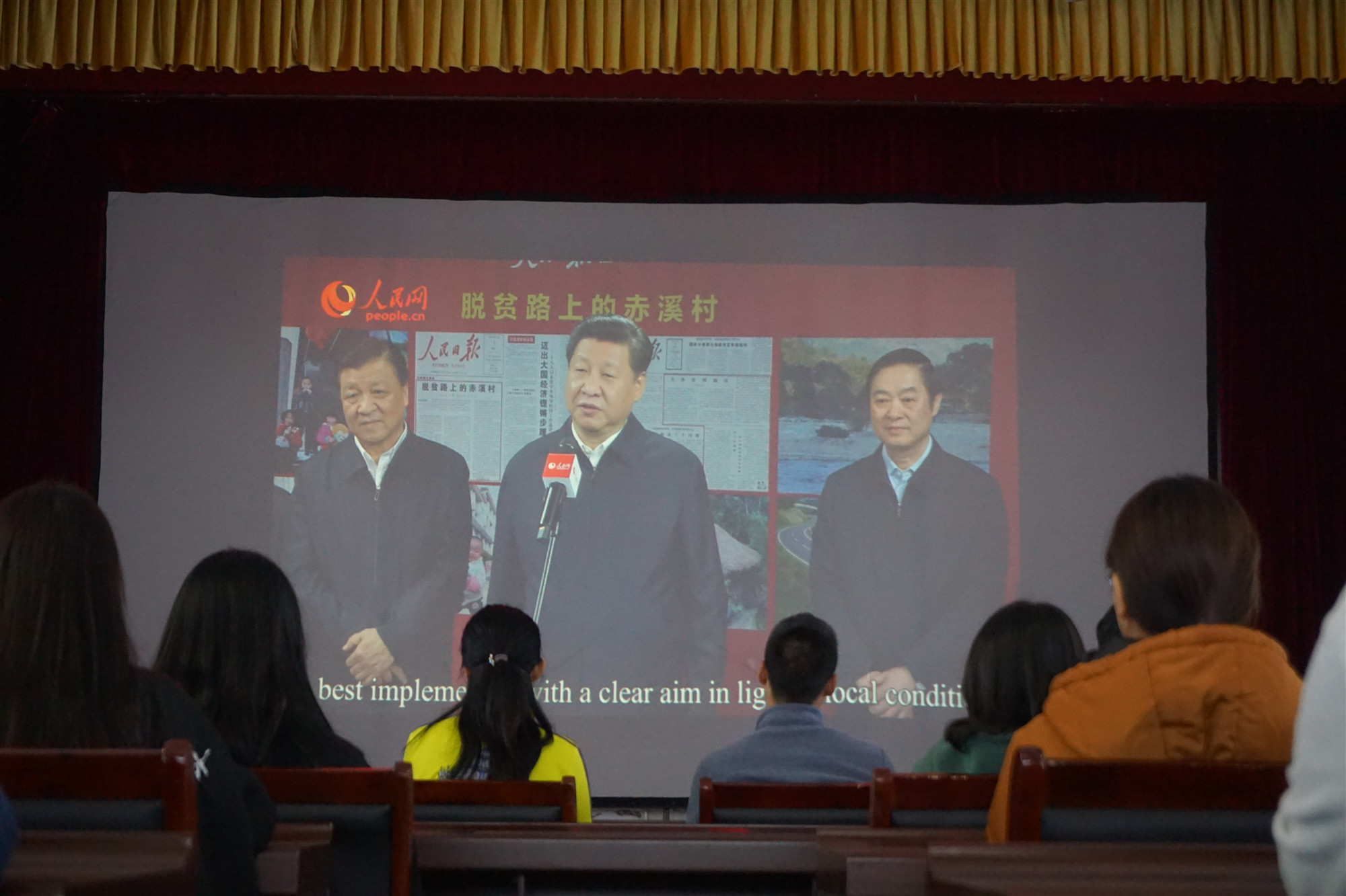 在“中国扶贫第一村”——赤溪村,在赤溪村扶贫历程展示馆,师生们认真学习了赤溪“输血”扶贫困、“换血”刨穷根、“造血”寻富路、合力兴产业、建设小康村的奋斗历史,深入理解赤溪村走出的“旅游富村、农业强村、文化立村、生态美村”的精准扶贫新路,深刻感悟赤溪人民“艰苦奋斗、顽强拼搏、滴水穿石、久久为功”的精神。在赤溪村,还现场举办了师生“话脱贫、谈理想”座谈会,交流参观考察、社会调查的感受。