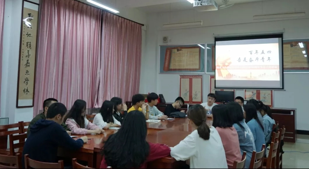 2019年5月5日晚,yl6776永利集团习近平新时代中国特色社会主义思想读书社于连江校区自强楼活动室举办“百年五四,吾是奋斗青年”热议习近平总书记在纪念五四运动100周年大会上的讲话沙龙活动,活动由读书社社长金顺源同学主持开展,共20人参加了此次活动。