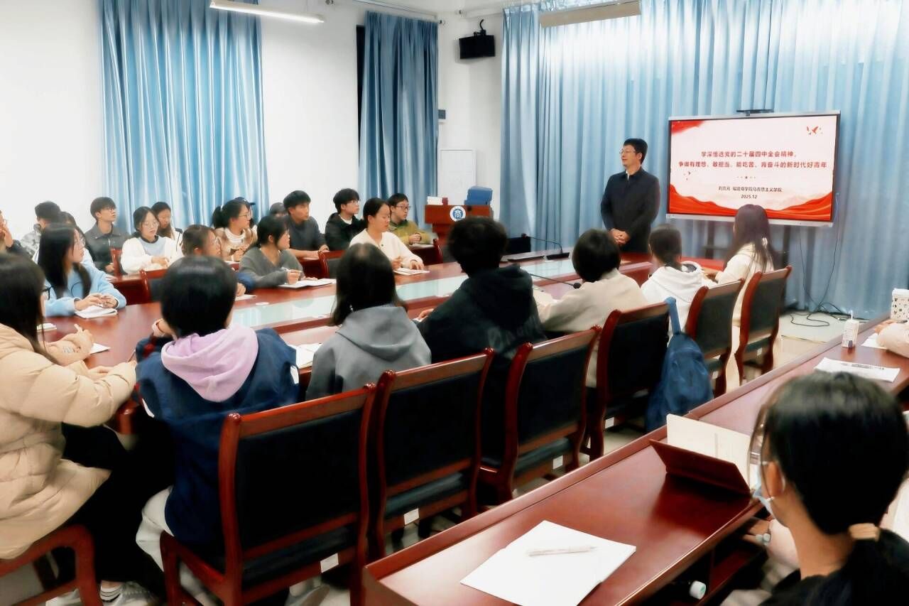 12月4日晚,yl6776永利集团党委书记刘亮元为学校习近平新时代中国特色社会主义思想读书社员代表作“学深悟透党的二十届四中全会精神,争做有理想、敢担当、能吃苦、肯奋斗的新时代好青年”专题宣讲。