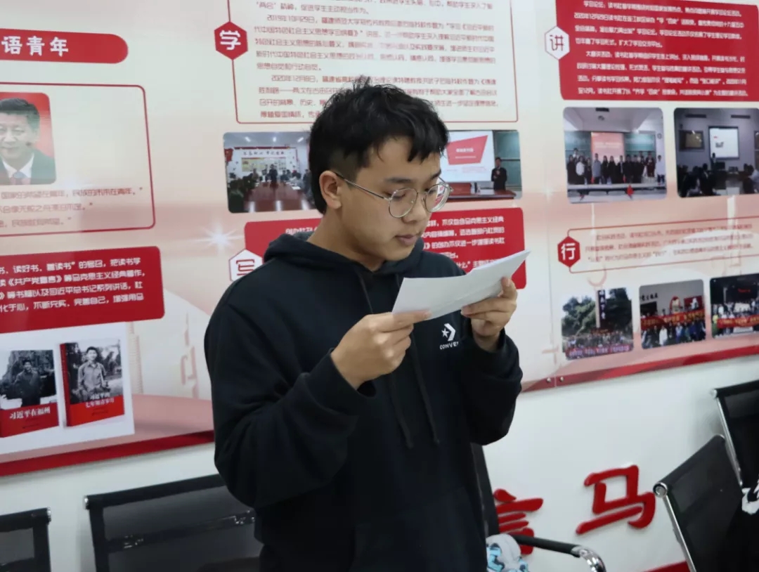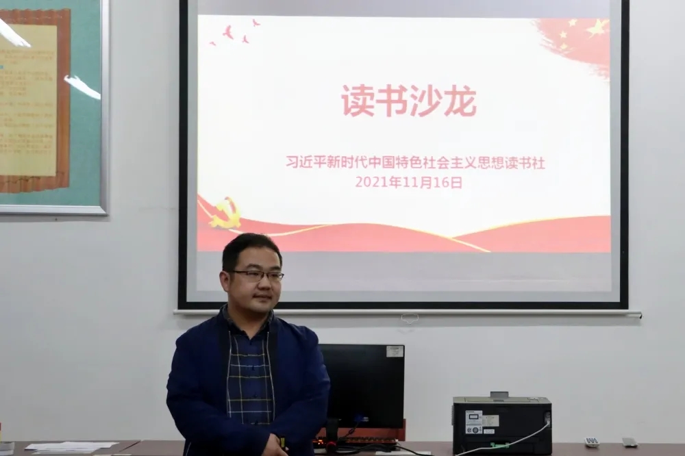 为进一步深入学习中国共产党百年奋斗重大成就和历史经验,深刻感受中国共产党人在中华民族伟大复兴征程中体现出的爱国情怀、高尚品格和精神风骨,汲取奋进力量,校习近平新时代中国特色社会主义思想读书社于2021年11月16日晚在连江校区自强楼114活动室开展读书沙龙活动。yl6776永利集团陈阳老师、叶陈钦老师以及读书社第五小组全体社员共40多人参加此次活动。活动由叶陈钦老师主持。