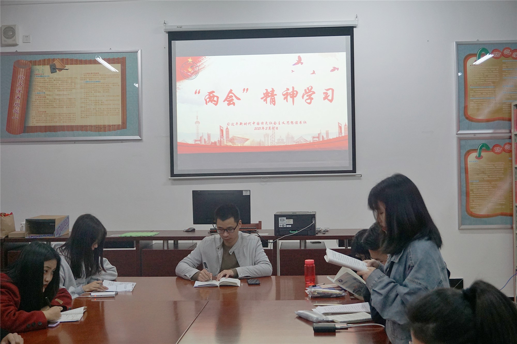 为推动学校师生进一步深入学习贯彻2021年全国两会精神,特别是习近平总书记在全国两会上的重要讲话精神,两会召开以来,校习近平新时代中国特色社会主义思想读书社师生通过各种方式收听、收看两会,学习2021年政府工作报告,并结合自己的工作、学习实际,持续开展了热议和研讨。