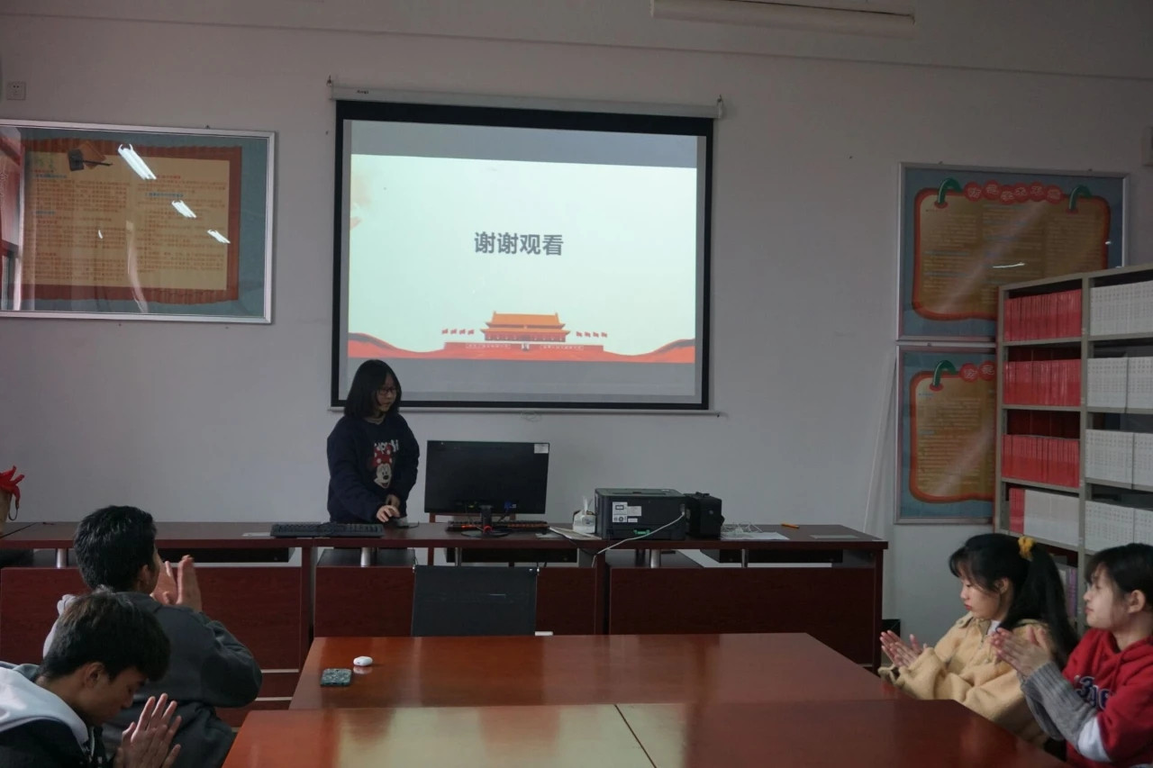 为进一步学习宣传习近平新时代中国特色社会主义思想,特别是党的十九届五中全会精神,贯彻总书记关于深入学习“四史”的重要指示精神,深刻感悟党在领导脱贫攻坚中汇众智、集众志、聚众力,一路披荆斩棘,夺取全面建成小康社会新胜利的伟大实践成果,深入推进爱国主义教育,坚定全面建成小康社会的信心。校习近平新时代中国特色社会主义思想读书社于12月22日开始在连江校区自强楼114活动室开展以“齐学‘四史’担使命,共话脱贫奔小康”为主题的宣讲活动。活动由梁梦瑀、庄妍妍、林银玲、陈海涛四位同学宣讲。